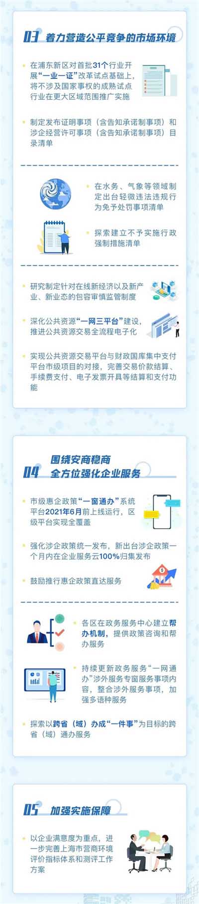 《上海市加強改革系統(tǒng)集成 持續(xù)深化國際一流營商環(huán)境建設(shè)行動方案》今天正式公布,圍繞優(yōu)化政務(wù)環(huán)境、提升企業(yè)全生命周期管理服務(wù)、營造公平競爭市場環(huán)境等5方面提出31項任務(wù),共207條舉措。《行動方案》提出:實現(xiàn)政務(wù)服務(wù)可網(wǎng)辦能力達(dá)到95%以上,“最多跑一次”事項范圍由企業(yè)間不動產(chǎn)轉(zhuǎn)移登記擴(kuò)展到所有不動產(chǎn)登記......圖解詳見下文↓